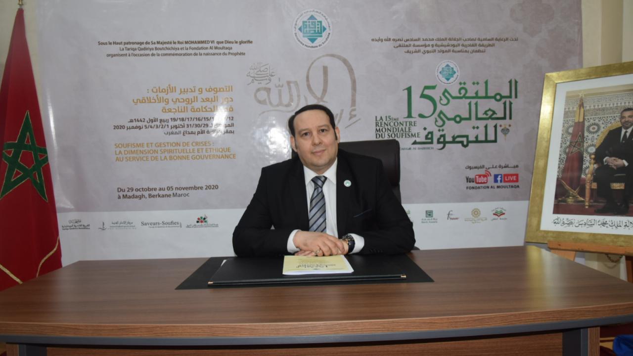 تحت الرعاية السامية لأمير المؤمنين جلالة الملك محمد السادس نصره الله، وباسم مؤسسة الملتقى ونيابة عن شيخ الطريقة القادرية البودشيشية الدكتور مولاي جمال الدين القادري بودشيش، ومشيختها، أعطى الدكتور منير القادري بودشيش، الخميس 29 اكتوبرالجاري، انطلاقة فعاليات الدورة الخامسة عشر للملتقى العالمي للتصوف حول موضوع: “التصوف وتدبير الأزمات: دور البعد الروحي والأخلاقي في الحكامة الناجعة”، الذي ينظم هذه السنة افتراضيا، انسجاما مع التدابير الاحترازية في ظل جائحة كورونا وذلك في الفترة الممتدة من 12 الى 19 ربيع الأول 1442ه الموافق من 29 أكتوبر الى 5 نونبر.