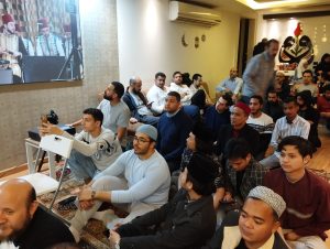 ونظمت الطريقة الأكبرية إفطار جماعي قبيل الاحتفال بمناسبة مولد القطب الأكبري، وبدأ الاحتفال بقراءة القرآن، ثم الإنشاد الديني من قبل فرقة المرعشلي للإنشاد الديني والصوفي، تلتها قراءة للأوراد الخاصة بالطريقة الأكبرية الحاتمية، ثم كلمة الوعظ والإرشاد من الشيخ أيمن حمدي الأكبري الذي أكد على الدور الهام الذي قام به محيى السنة والتصوف “الشيخ بن العربي”.