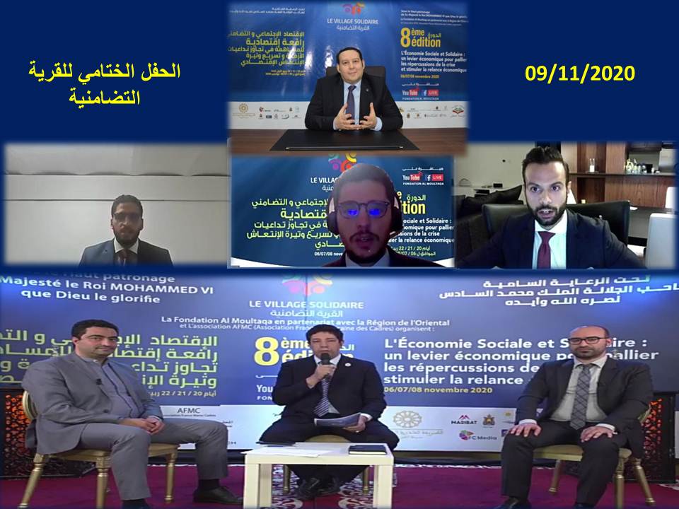 اختتمت فعاليات القرية التضامنية، التي نظمتها مؤسسة الملتقى بشراكة مع الجهة الشرقية، والجمعية الفرنكومغربية للأطر بالمملكة المغربية بالتزامن مع فعاليات الملتقي الصوفي العالمي الذي نظم هذا العام ، تحت الرعاية السامية لصاحب الجلالة الملك محمد السادس نصره الله، مساء أمس ، بجلسة ختامية، بثت مباشرة عبر الوسائط الإلكترونية لمؤسسة الملتقى، وتولى الأستاذ أحمد كلين تقديم فقراتها.